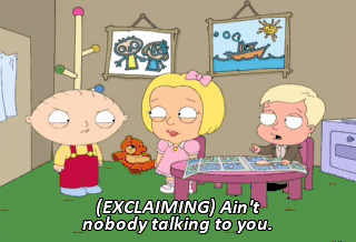 (EXCLAIMING) Ain't nobody talking to you. Is that the Silly Putty I bought you this weekend?