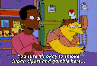 You sure it's okay to smoke Cuban cigars and gamble here...