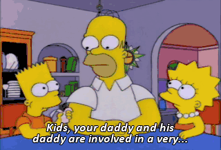 Kids, your daddy and his daddy are involved in a very... sticky, nutty, chewy, chocolaty-- Put it away, boy!