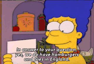 In answer to your question, yes, we do have hamburgers and fries in England.