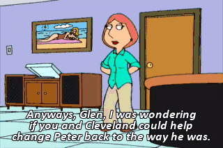 Anyways, Glen, I was wondering if you and Cleveland could help change Peter back to the way he was.