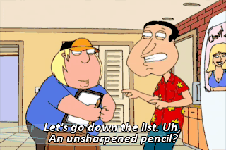 Let's go down the list. Uh, An unsharpened pencil?