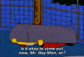 Is it okay to come out now, Mr. Gay Man, sir? I'll do anything you say-- anything!