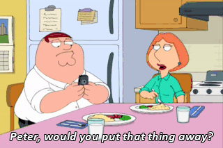 Peter, would you put that thing away? We're trying to eat dinner. I can't believe fucking Jesus hasn't called me back. I left him a message, like, four hours ago.