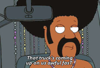 That truck's coming up on us awful fasT. Holy crap! Do you see what I see? I'm afraid I do! We're being chased by ghosts!