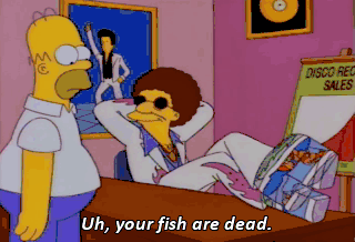 Uh, your fish are dead. Yeah, I know. I can't get them out of there.