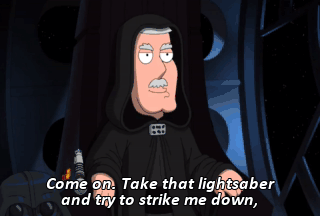 Come on. Take that lightsaber and try to strike me down,