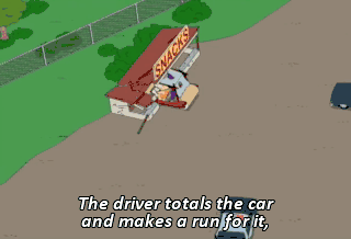 The driver totals the car and makes a run for it, but the pursuing officers are prepared. Running from the cops? Yabba-dabba-don't!