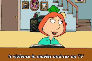 Is violence in movies and sex on TV But where are those good old-fashioned values On which we used to rely? Lucky there 's a family guy Lucky there 's a man who Positively can do All the things that make us