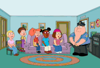 What's your name, sweetie? Dad, you know my name. (EXCLAIMS) It's Officer Nasty. Careful, I might be carrying a concealed weapon.
