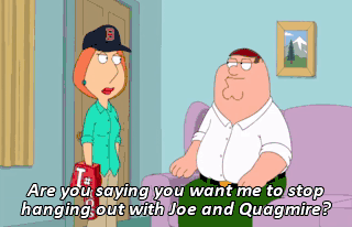 Are you saying you want me to stop hanging out with Joe and Quagmire? They're my friends. They're all I got! And you know how hard it is for me to make new friends. Is this friends?