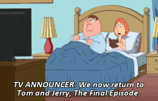 TV ANNOUNCER: We now return to Tom and Jerry, The Final Episode.