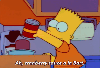 Ah, cranberry sauce a la Bart. just stick it in the refrigerator when you're done, Bart. Bart ?