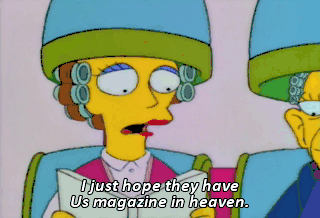 I just hope they have Us magazine in heaven.