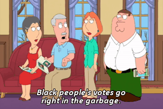 Black people's votes go right in the garbage. All right! We're moving to Florida!