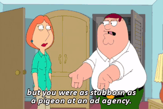 but you were as stubborn as a pigeon at an ad agency.