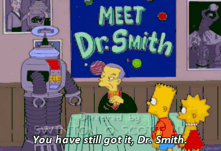 You have still got it, Dr. Smith. Silence, you nickel-plated nitwit! My dear boy, I'd be happy to show you my rÉsume... if you'd care to meet me later in the food court. Danger, danger, Bart Simpson.
