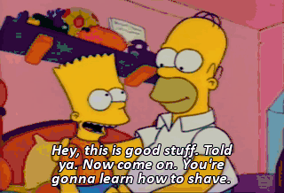 Hey, this is good stuff. Told ya. Now come on. You're gonna learn how to shave.