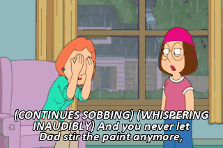 (CONTINUES SOBBING) (WHISPERING INAUDIBLY) And you never let Dad stir the paint anymore, whatever that means. I didn't know you knew that, Meg, but I'm glad you brought it up.
