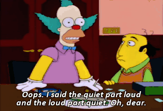 Oops. I said the quiet part loud and the loud part quiet. Oh, dear. Two to two. Well, Homer, it all comes down to you.