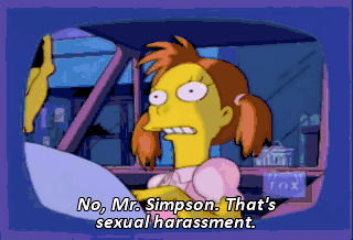 No, Mr. Simpson. That's sexual harassment. If you keep it up, I'll yell so loud, the whole country'll hear. With a man in the White House? Not likely.