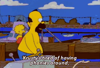 Krusty's tired of having phonies around,