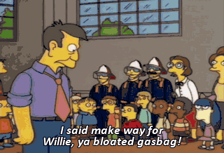 I said make way for Willie, ya bloated gasbag! Seymour. Hmm? You're fired! I'm sorry. Did-- Did you just call me a liar? No. I said you were fired. Oh. That's much worse.