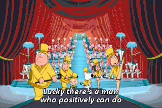 Lucky there's a man who positively can do All the things that make us Laugh and cry He's a family guy (WIND HOWLING) Our top story tonight,