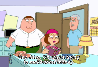 Hey, Meg. Uh, we're trying to make some money. And, um... Would you like to buy some pot from your granddaddy and me? Um, wow! Sure. Oh, fantastic. What the hell was that for? Now we have the pot and the money.