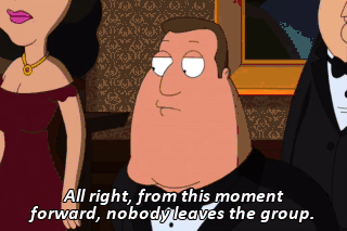 All right, from this moment forward, nobody leaves the group. Joe's right. Everyone huddle up.