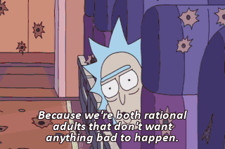 Because we're both rational adults that don't want anything bad to happen. And because I have a human shield. Mrs. Pancakes! Oh, no, Morty. His subconscious is panicking. Run!