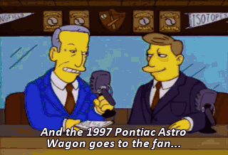 And the 1997 Pontiac Astro Wagon goes to the fan... sitting in seat number 0001C, Montgomery Burns. Yea! Yea! And the fans do not like this one bit.