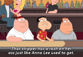 That stripper has a rash on her ass just like Anna Lee used to get.