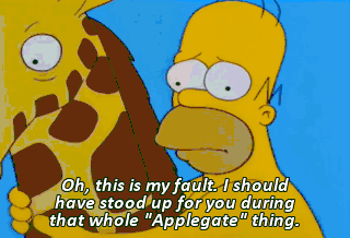 Oh, this is my fault. I should have stood up for you during that whole "Applegate" thing.