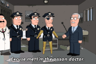 Excuse me, I'm the prison doctor.