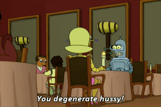 You degenerate hussy! I'm disappointed in you too, Angleene.