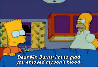 Dear Mr. Burns: I'm so glad you enjoyed my son's blood, and your card was just great.