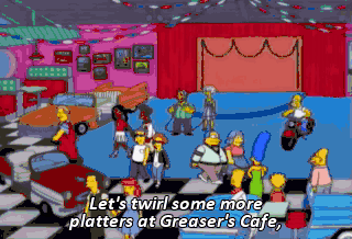 Let's twirl some more platters at Greaser's Cafe, where the '50s are never goin' away! Well, that dream is over. At least we still have each other. Right, honey? Honey?