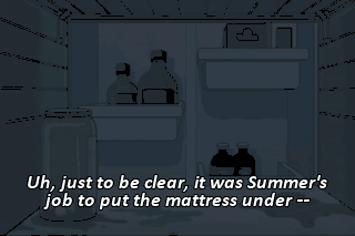 Uh, just to be clear, it was Summer's job to put the mattress under --