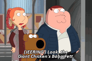 (JEERING ) Look, the Giant Chicken's Boba Fett.