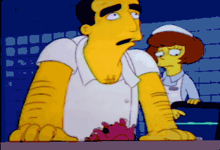 Oh! This is the part of the job I hate. You're a veterinarian? That's right. And for an extra $20, I'll give Homer a tick bath and then spay him.