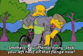Smithers, you infernal ninny. Stick your left hoof on that flange now!