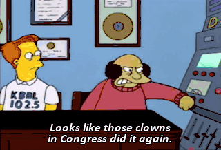 Looks like those clowns in Congress did it again. What a bunch of clowns. How does he keep up with the news like that? Whoo-ho-ho-ho!