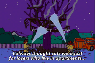 I always thought cats were just for losers who live in apartments... until my life was saved by this sweet little kitty. Ooh. But as for you, Santa's Little Helper, you are a selfish coward and a bad dog!