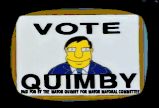Paid for by the Mayor Quimby for Mayor Mayoral Committee. Hey, four-eyes, vote Quimby. Hey, beard-o, vote Quimby.