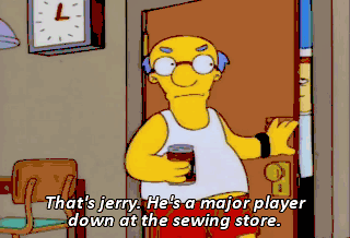 That's jerry. He's a major player down at the sewing store. Well, thanks for introducing me. Ah, don't worry, Homer. You know me. And I'm a superstar at the cracker factory. You're letting me go?