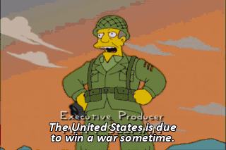 The United States is due to win a war sometime. Oh, good Lord! It a Swingline! (GASPS) (SCREAMS) Medic! (GROANS) (BOTH STRAINING) Skinner!
