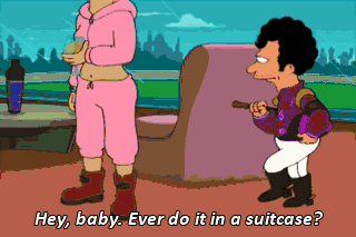 Hey, baby. Ever do it in a suitcase? Ooh, look! It's the centaur race! Oww! Aah! Oww! Oww! Come on, come on! Hey, Leela, how 'bout a kiss for good luck?