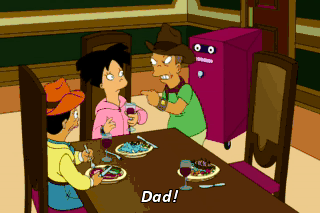 Dad! I'm attracted to Bender, not this emotionless wine bucket! Hopes deleted.