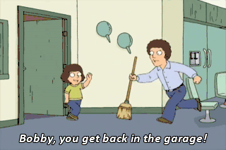 Bobby, you get back in the garage! Ow! Ahh! Ahh! Ow!